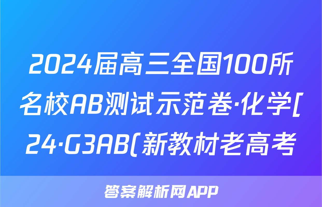 2024届高三全国100所名校AB测试示范卷·化学[24·G3AB(新教材老高考)·化学-R-必考-HEB]六试题正在持续更新,目前2025届国考1号答案网为大家整理了相关试题及答案,供大家查缺补漏,高效提升成绩。