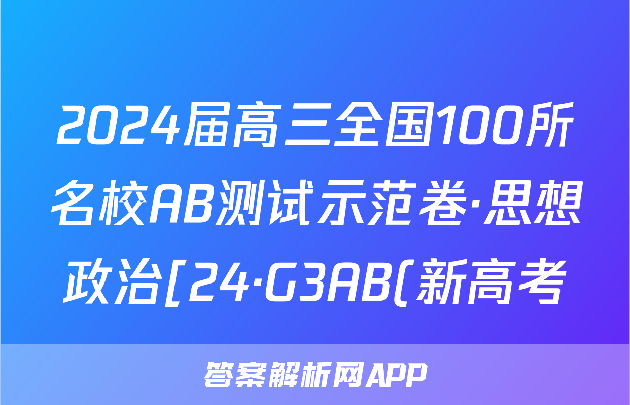 2024届高三全国100所名校AB测试示范卷·思想政治[24·G3AB(新高考)·思想政治-R-必考-QGC]七试题正在持续更新,目前2025届国考1号答案网为大家整理了相关试题及答案,供大家查缺补漏,高效提升成绩。