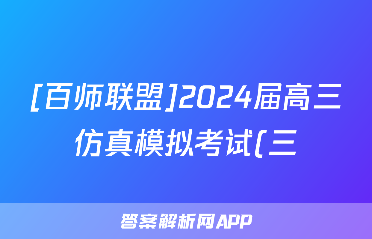 [百师联盟]2024届高三仿真模拟考试(三)3化学(重庆卷)答案正在持续更新,目前2025届国考1号答案网为大家整理了相关试题及答案,供大家查缺补漏,高效提升成绩。