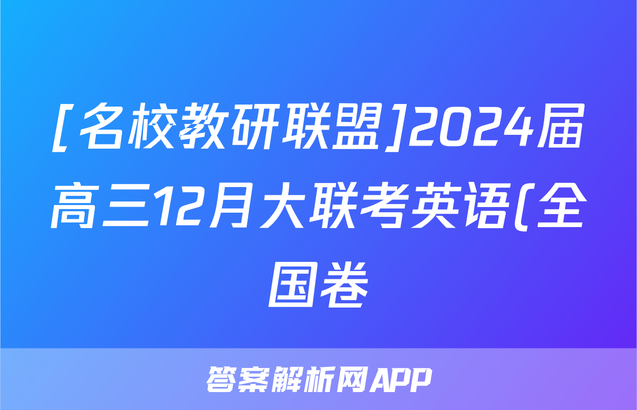 [名校教研联盟]2024届高三12月大联考英语(全国卷)答案正在持续更新,目前2025届国考1号答案网为大家整理了相关试题及答案,供大家查缺补漏,高效提升成绩。