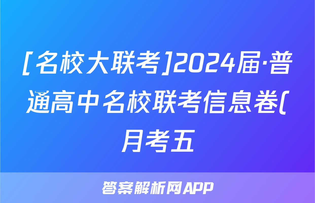 [名校大联考]2024届·普通高中名校联考信息卷(月考五)物理答案正在持续更新,目前2025届国考1号答案网为大家整理了相关试题及答案,供大家查缺补漏,高效提升成绩。