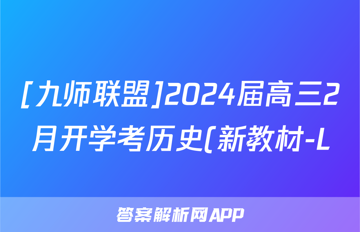 [九师联盟]2024届高三2月开学考历史(新教材-L)答案