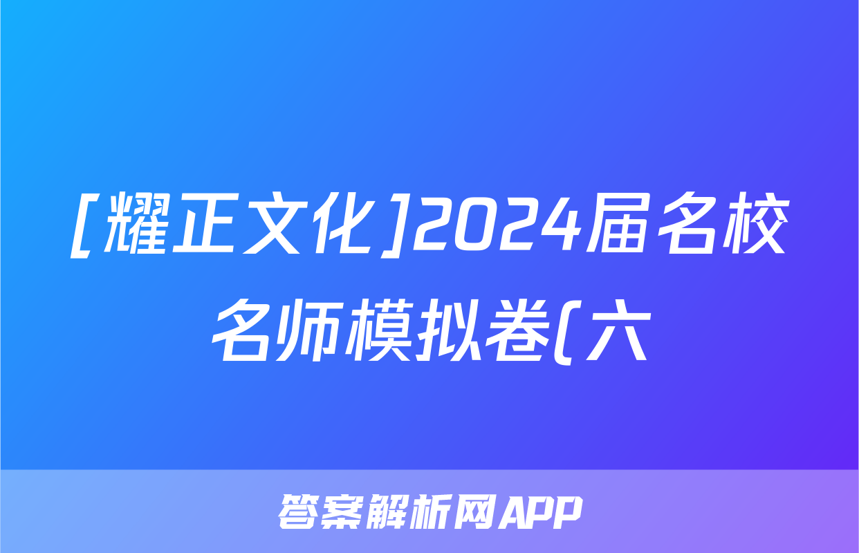 [耀正文化]2024届名校名师模拟卷(六)6地理答案正在持续更新,目前2025届国考1号答案网为大家整理了相关试题及答案,供大家查缺补漏,高效提升成绩。