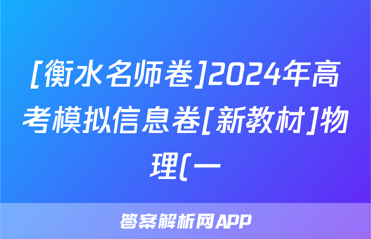 3、[衡水名师卷]2024年高考模拟信息卷[新教材]物理(一)1答案