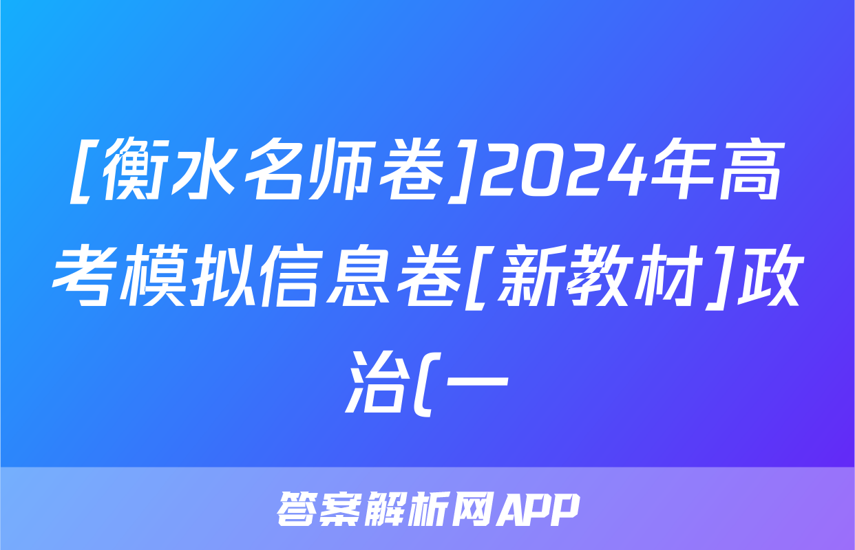 [衡水名师卷]2024年高考模拟信息卷[新教材]政治(一)1答案