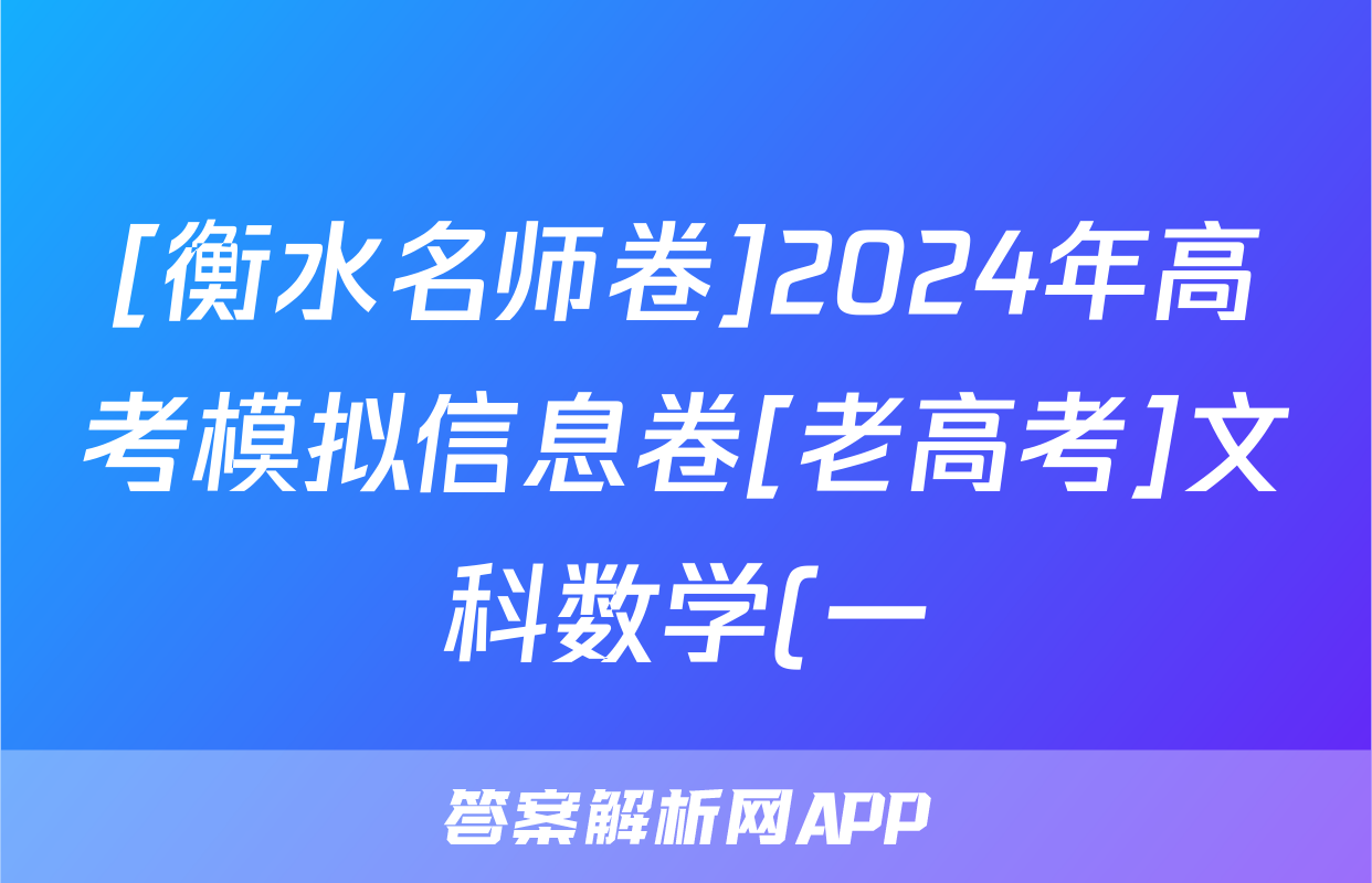 [衡水名师卷]2024年高考模拟信息卷[老高考]文科数学(一)1答案正在持续更新,目前2025届国考1号答案网为大家整理了相关试题及答案,供大家查缺补漏,高效提升成绩。