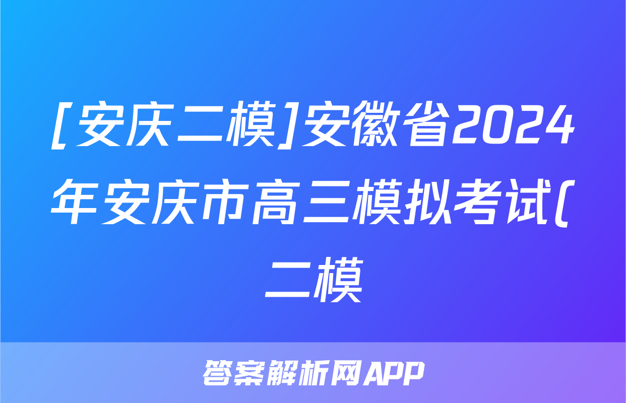 5、安庆市2024年高三模拟考试二模理科综合试题答案