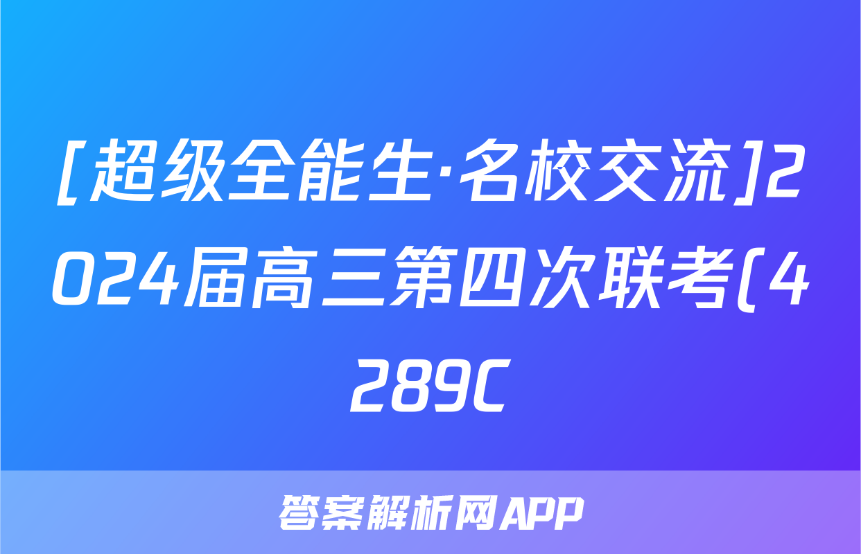 1、[超级全能生·名校交流]2024届高三第四次联考(4289C)生物XX答案