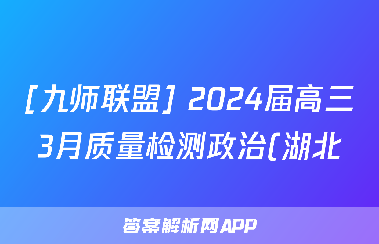 [九师联盟] 2024届高三3月质量检测政治(湖北)试题