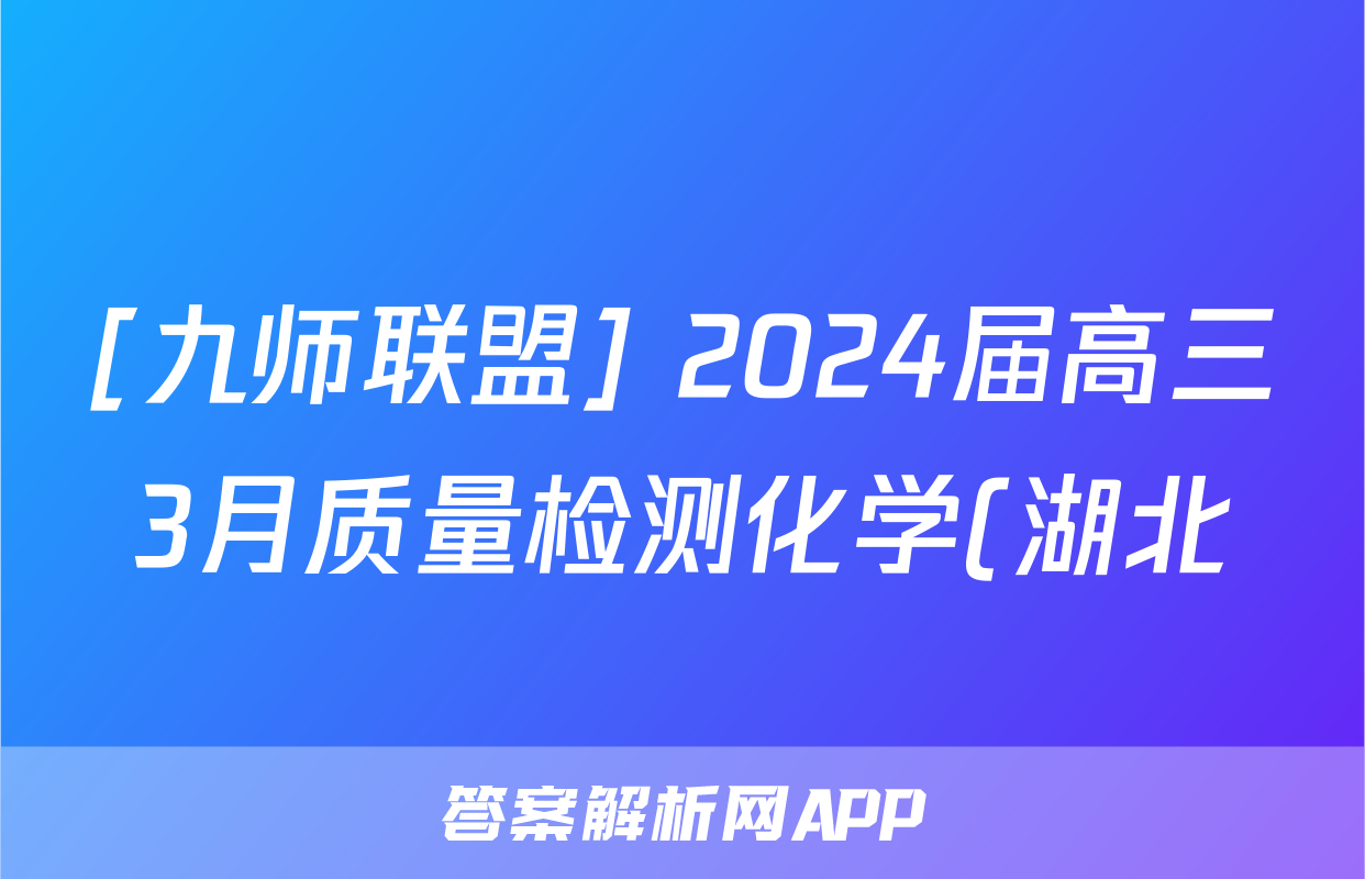 [九师联盟] 2024届高三3月质量检测化学(湖北)答案正在持续更新,目前2025届国考1号答案网为大家整理了相关试题及答案,供大家查缺补漏,高效提升成绩。