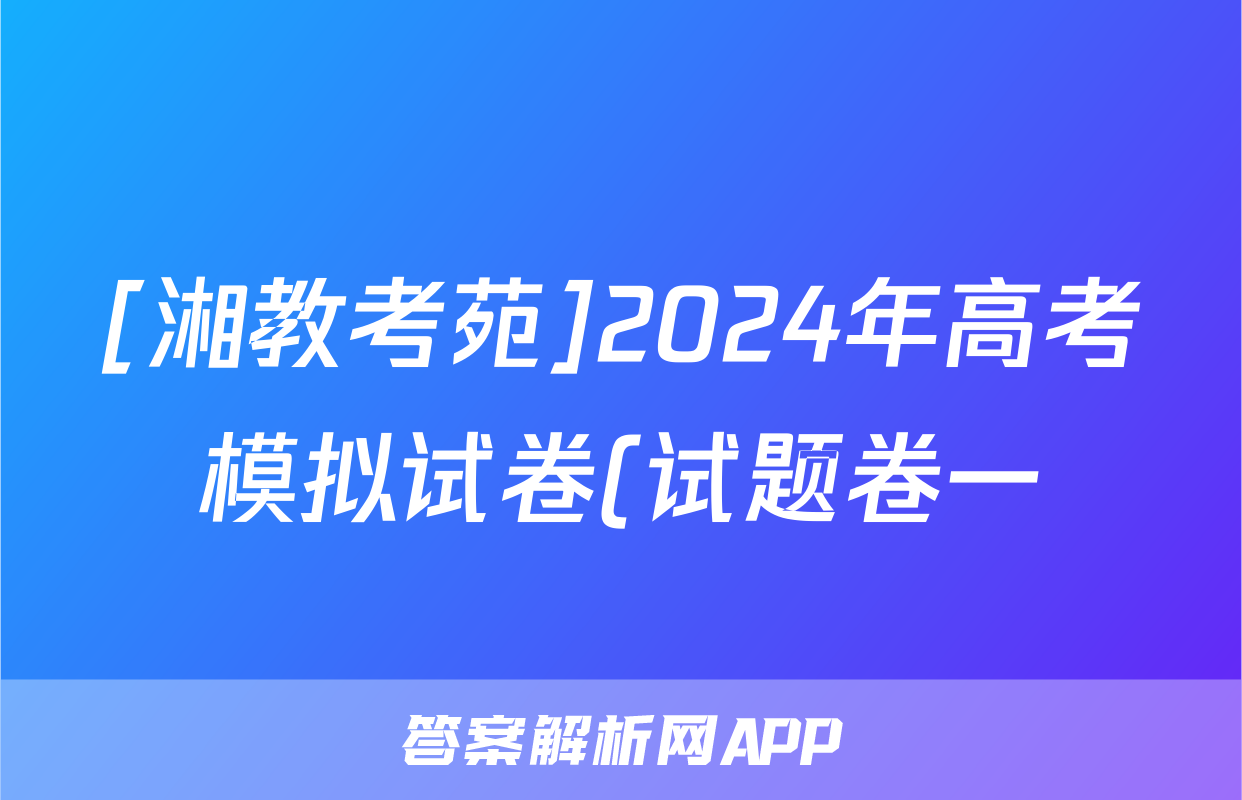[湘教考苑]2024年高考模拟试卷(试题卷一)答案(生物)正在持续更新,目前2025届国考1号答案网为大家整理了相关试题及答案,供大家查缺补漏,高效提升成绩。