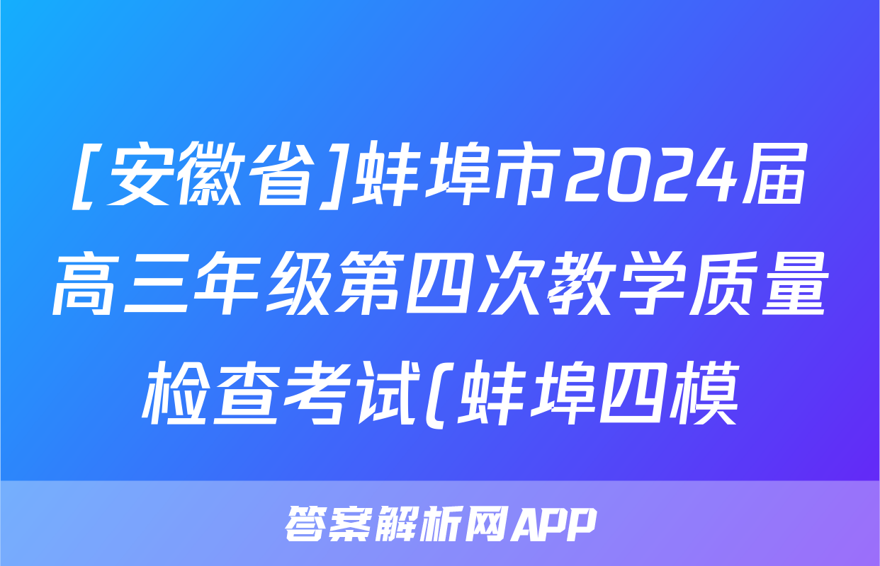 [安徽省]蚌埠市2024届高三年级第四次教学质量检查考试(蚌埠四模)试题(历史)正在持续更新,目前2025届国考1号答案网为大家整理了相关试题及答案,供大家查缺补漏,高效提升成绩。