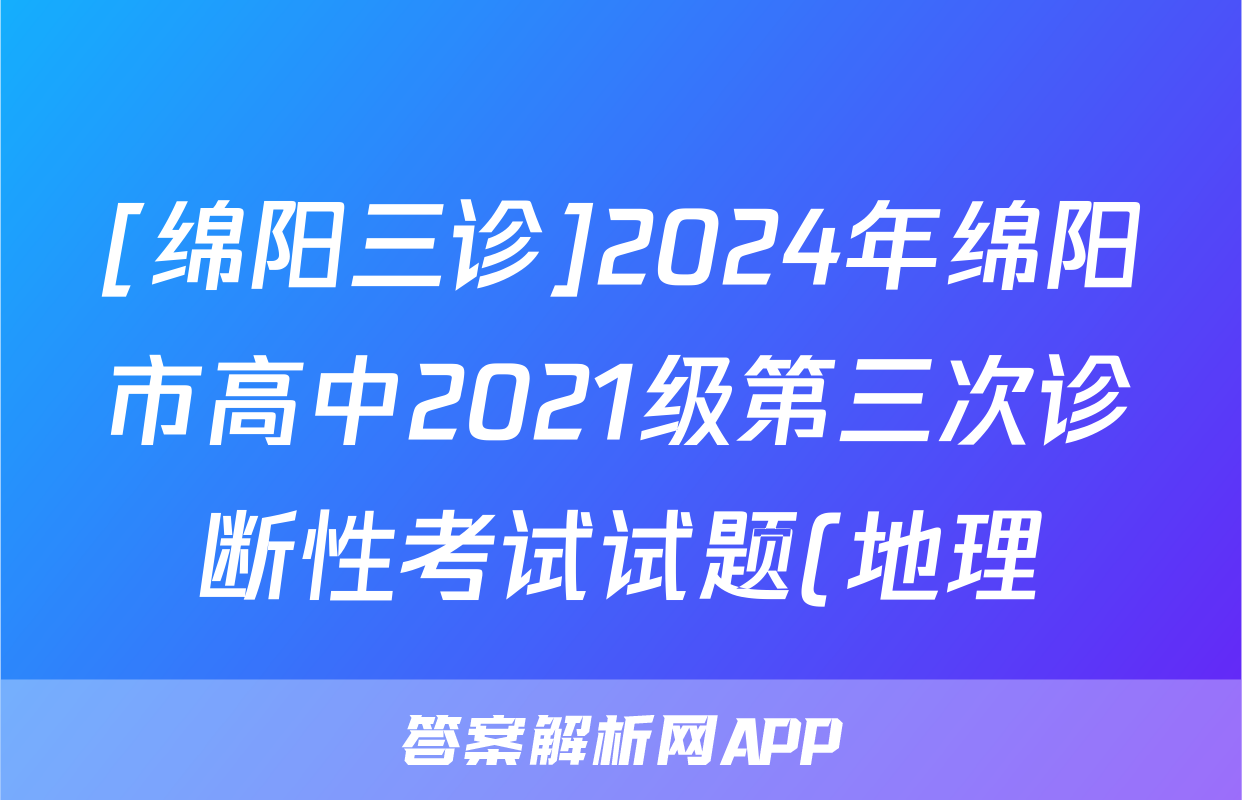 [绵阳三诊]2024年绵阳市高中2021级第三次诊断性考试试题(地理)正在持续更新,目前2025届国考1号答案网为大家整理了相关试题及答案,供大家查缺补漏,高效提升成绩。