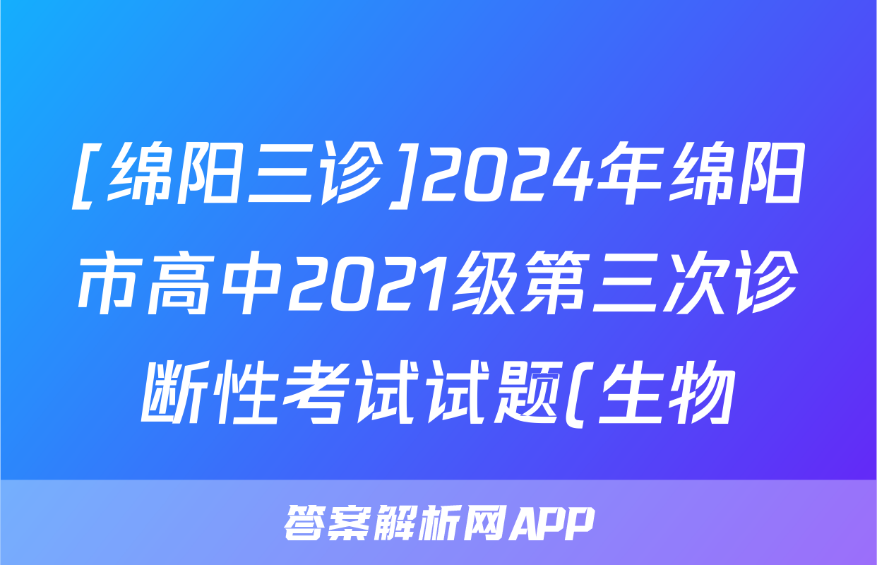 [绵阳三诊]2024年绵阳市高中2021级第三次诊断性考试试题(生物)正在持续更新,目前2025届国考1号答案网为大家整理了相关试题及答案,供大家查缺补漏,高效提升成绩。