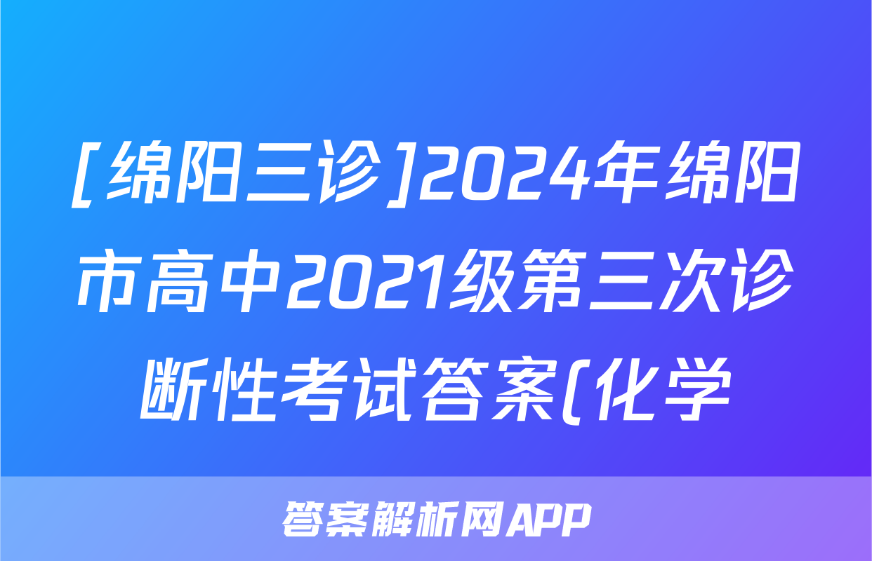 [绵阳三诊]2024年绵阳市高中2021级第三次诊断性考试答案(化学)正在持续更新,目前2025届国考1号答案网为大家整理了相关试题及答案,供大家查缺补漏,高效提升成绩。
