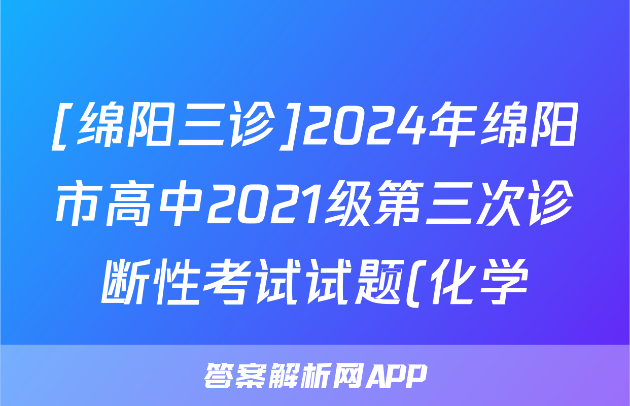 [绵阳三诊]2024年绵阳市高中2021级第三次诊断性考试试题(化学)正在持续更新,目前2025届国考1号答案网为大家整理了相关试题及答案,供大家查缺补漏,高效提升成绩。