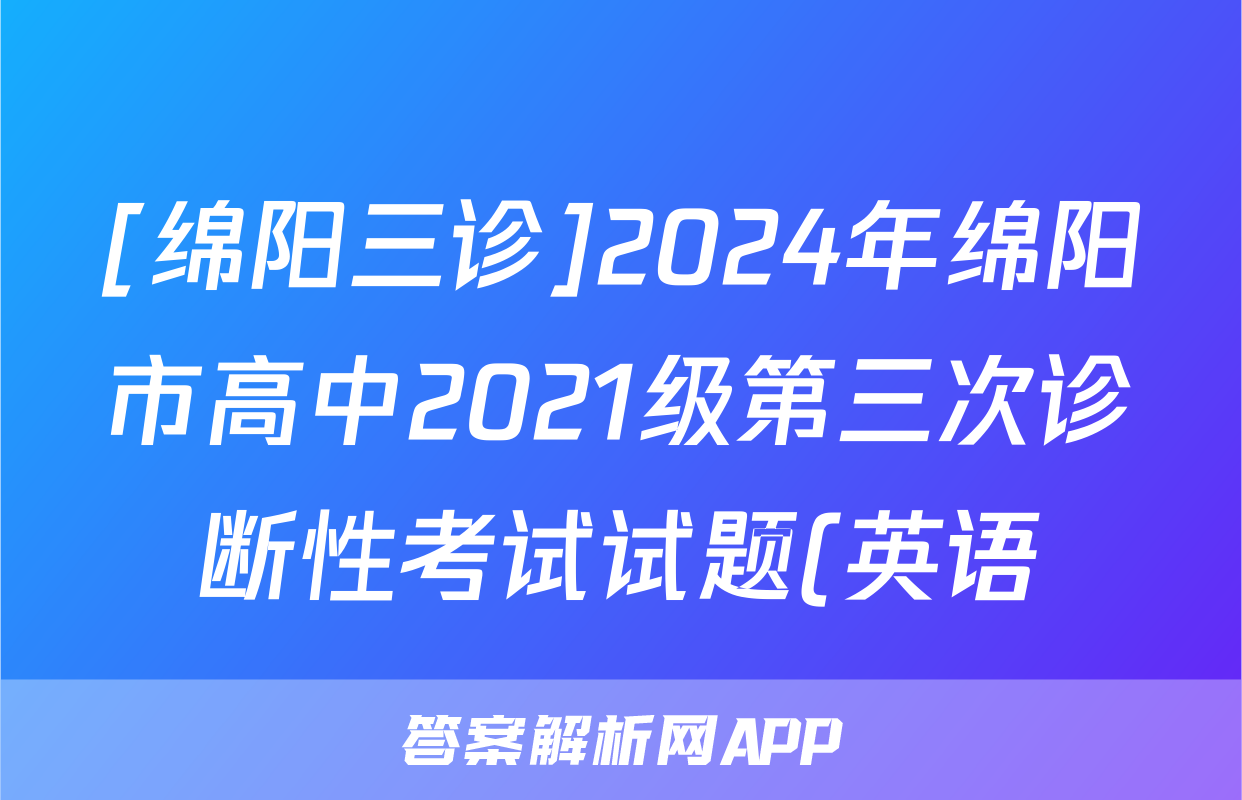 [绵阳三诊]2024年绵阳市高中2021级第三次诊断性考试试题(英语)正在持续更新,目前2025届国考1号答案网为大家整理了相关试题及答案,供大家查缺补漏,高效提升成绩。