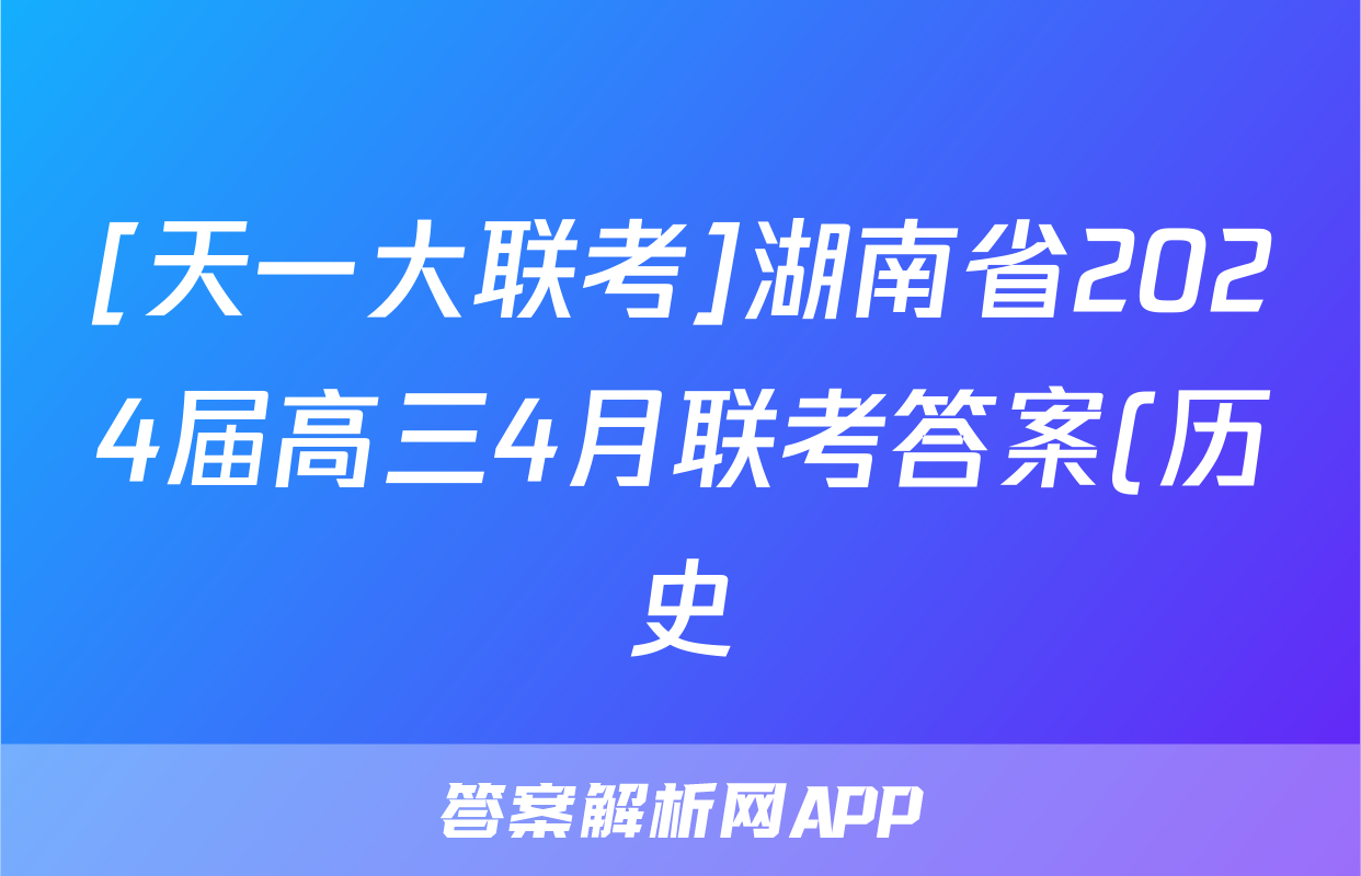 [天一大联考]湖南省2024届高三4月联考答案(历史)正在持续更新,目前2025届国考1号答案网为大家整理了相关试题及答案,供大家查缺补漏,高效提升成绩。