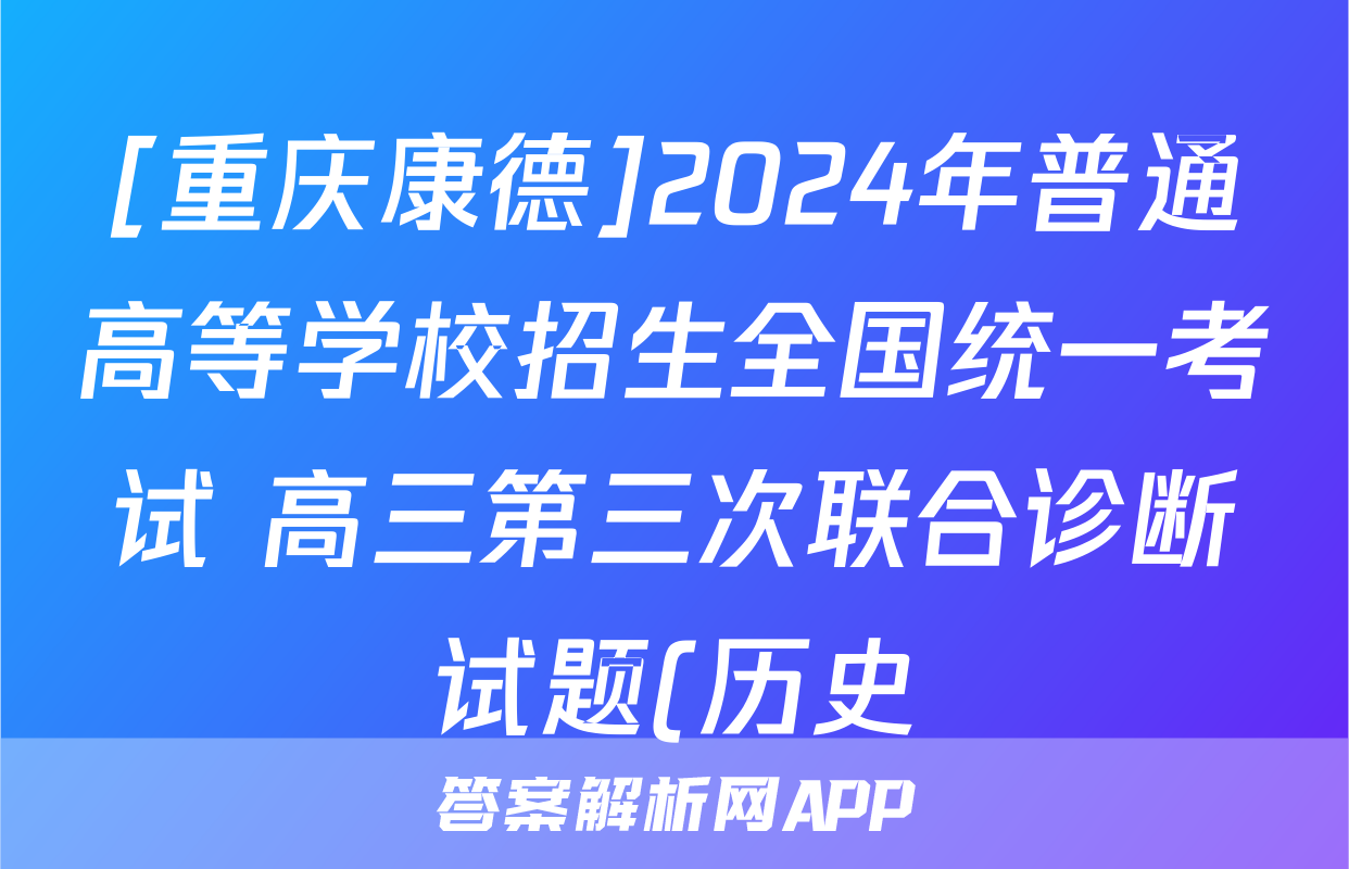 [重庆康德]2024年普通高等学校招生全国统一考试 高三第三次联合诊断试题(历史)正在持续更新,目前2025届国考1号答案网为大家整理了相关试题及答案,供大家查缺补漏,高效提升成绩。