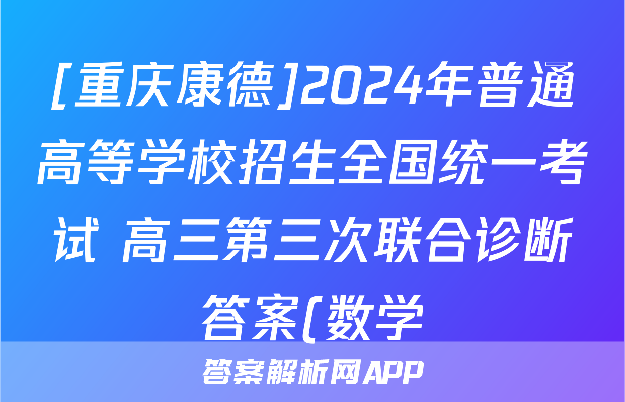 [重庆康德]2024年普通高等学校招生全国统一考试 高三第三次联合诊断答案(数学)正在持续更新,目前2025届国考1号答案网为大家整理了相关试题及答案,供大家查缺补漏,高效提升成绩。