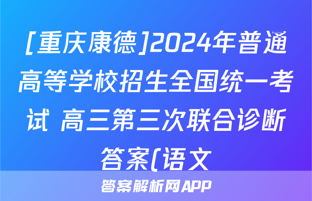 [重庆康德]2024年普通高等学校招生全国统一考试 高三第三次联合诊断答案(语文)正在持续更新,目前2025届国考1号答案网为大家整理了相关试题及答案,供大家查缺补漏,高效提升成绩。