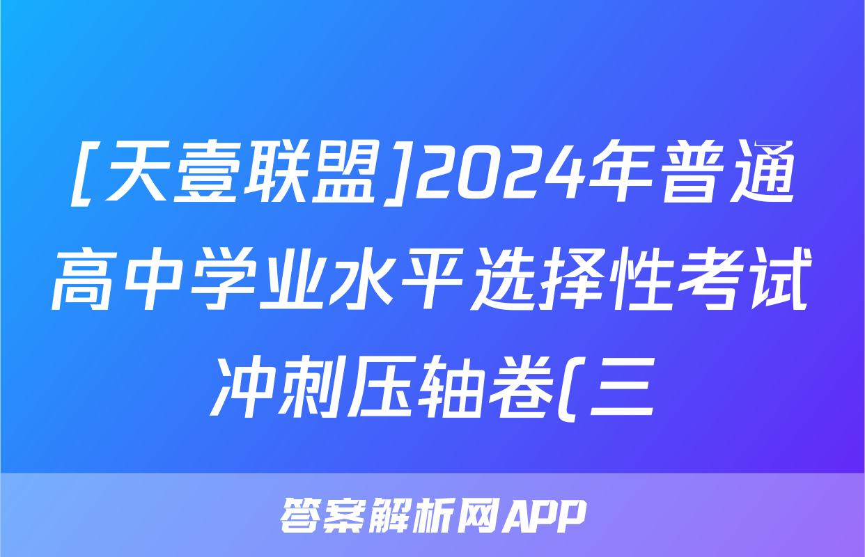 [天壹联盟]2024年普通高中学业水平选择性考试冲刺压轴卷(三)3试题(英语)正在持续更新,目前2025届国考1号答案网为大家整理了相关试题及答案,供大家查缺补漏,高效提升成绩。