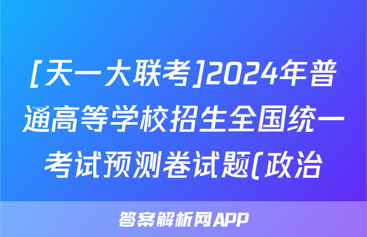 [天一大联考]2024年普通高等学校招生全国统一考试预测卷试题(政治)正在持续更新,目前2025届国考1号答案网为大家整理了相关试题及答案,供大家查缺补漏,高效提升成绩。
