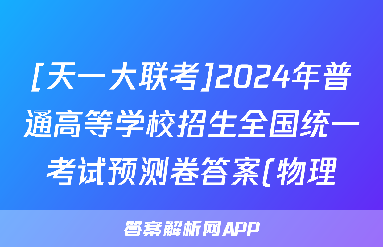 [天一大联考]2024年普通高等学校招生全国统一考试预测卷答案(物理)正在持续更新,目前2025届国考1号答案网为大家整理了相关试题及答案,供大家查缺补漏,高效提升成绩。