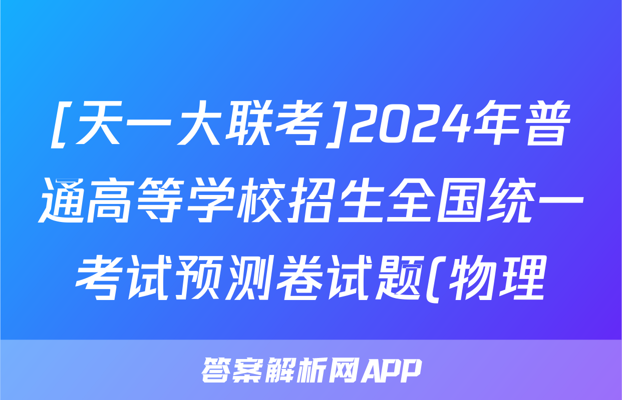 [天一大联考]2024年普通高等学校招生全国统一考试预测卷试题(物理)正在持续更新,目前2025届国考1号答案网为大家整理了相关试题及答案,供大家查缺补漏,高效提升成绩。