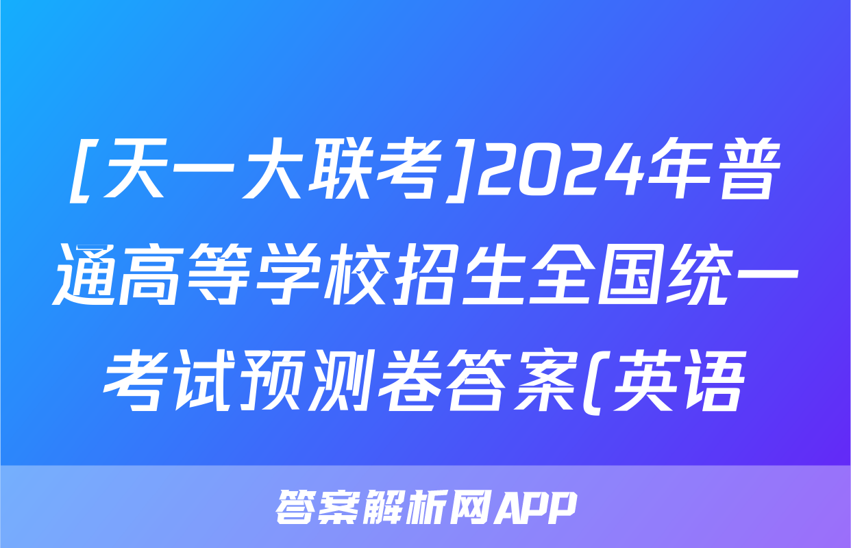[天一大联考]2024年普通高等学校招生全国统一考试预测卷答案(英语)正在持续更新,目前2025届国考1号答案网为大家整理了相关试题及答案,供大家查缺补漏,高效提升成绩。
