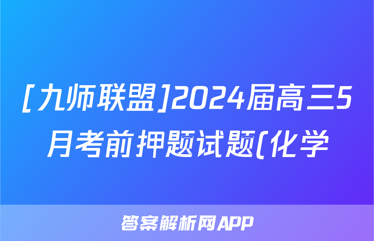 [九师联盟]2024届高三5月考前押题试题(化学)正在持续更新,目前2025届国考1号答案网为大家整理了相关试题及答案,供大家查缺补漏,高效提升成绩。