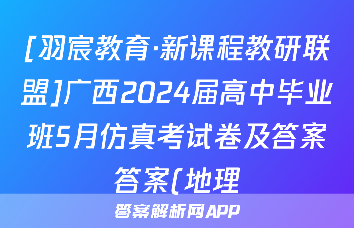 [羽宸教育·新课程教研联盟]广西2024届高中毕业班5月仿真考试卷及答案答案(地理)正在持续更新,目前2025届国考1号答案网为大家整理了相关试题及答案,供大家查缺补漏,高效提升成绩。