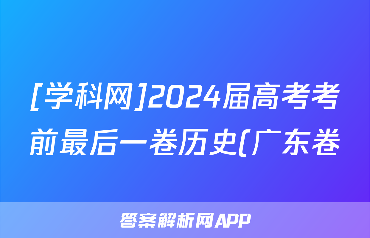 [学科网]2024届高考考前最后一卷历史(广东卷)答案正在持续更新,目前2025届国考1号答案网为大家整理了相关试题及答案,供大家查缺补漏,高效提升成绩。