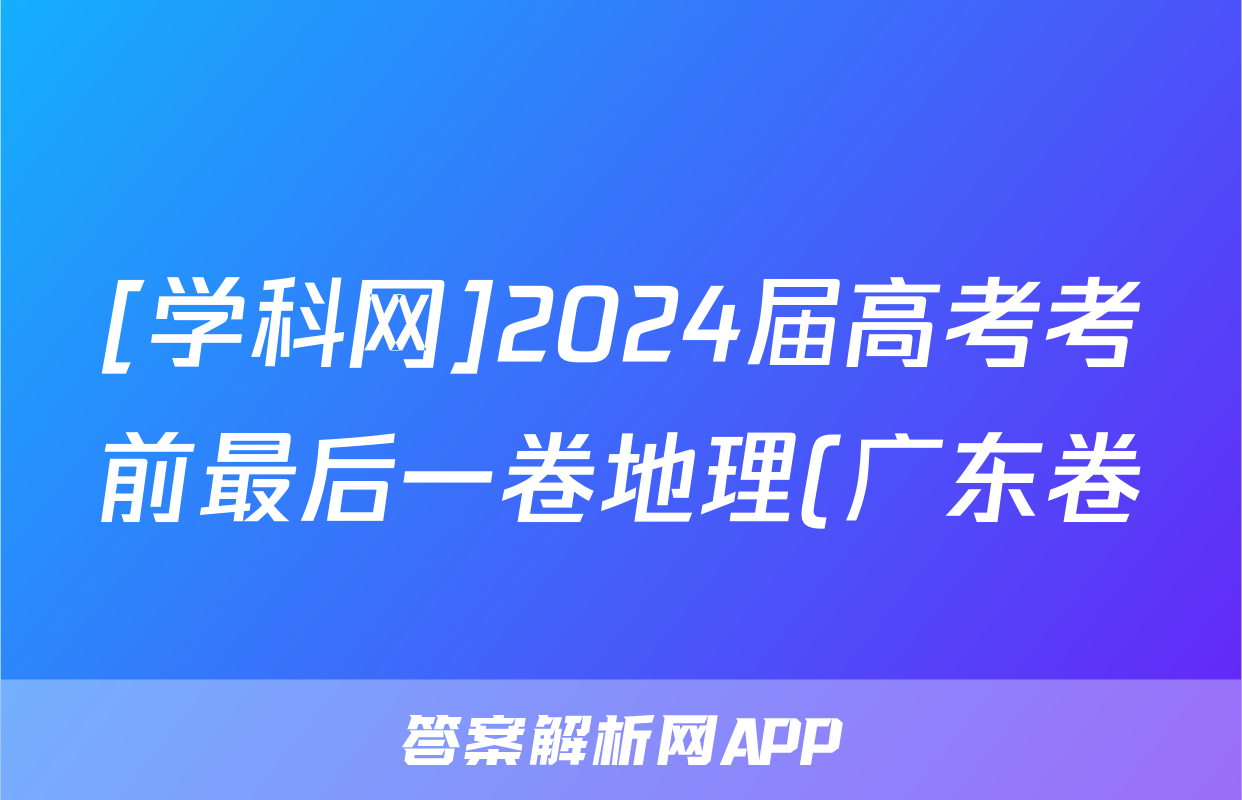 [学科网]2024届高考考前最后一卷地理(广东卷)答案正在持续更新,目前2025届国考1号答案网为大家整理了相关试题及答案,供大家查缺补漏,高效提升成绩。