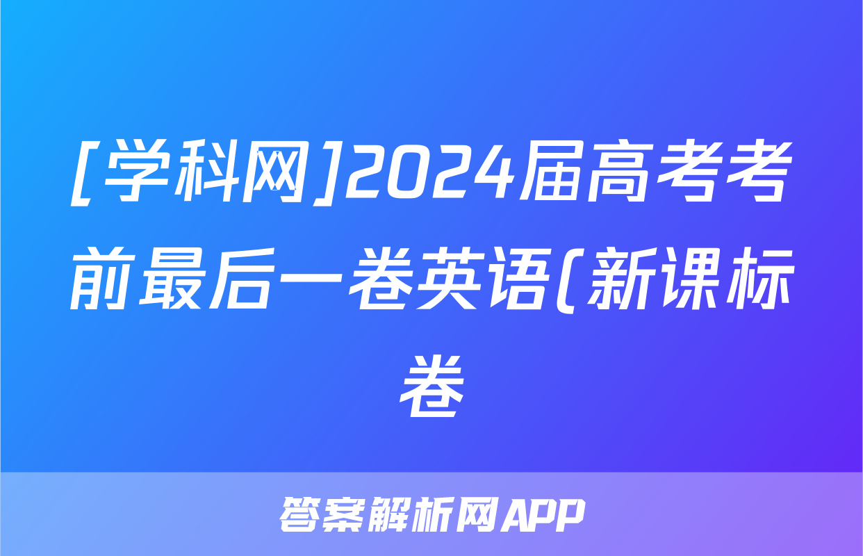 [学科网]2024届高考考前最后一卷英语(新课标卷)试题正在持续更新,目前2025届国考1号答案网为大家整理了相关试题及答案,供大家查缺补漏,高效提升成绩。