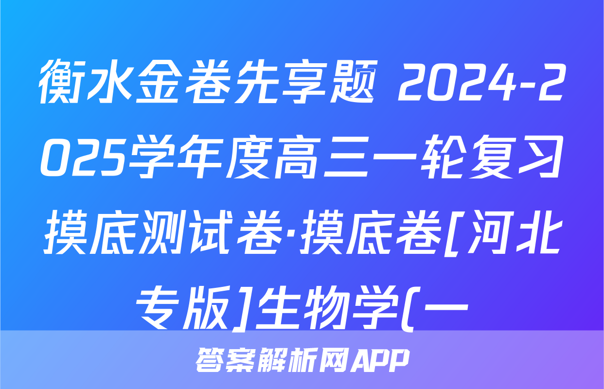 衡水金卷先享题 2024-2025学年度高三一轮复习摸底测试卷·摸底卷[河北专版]生物学(一)1试题正在持续更新,目前2025届国考1号答案网为大家整理了相关试题及答案,供大家查缺补漏,高效提升成绩。