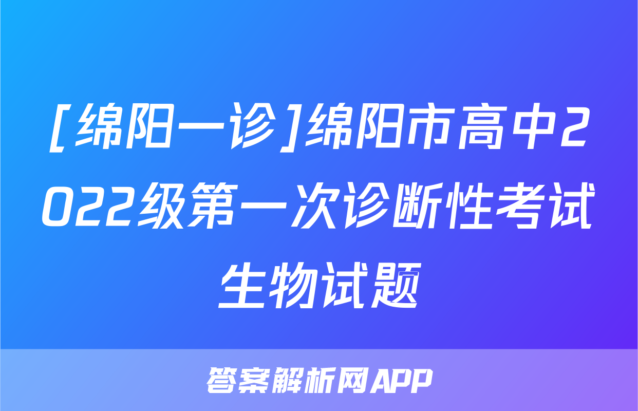 [绵阳一诊]绵阳市高中2022级第一次诊断性考试生物试题正在持续更新,目前2025届国考1号答案网为大家整理了相关试题及答案,供大家查缺补漏,高效提升成绩。