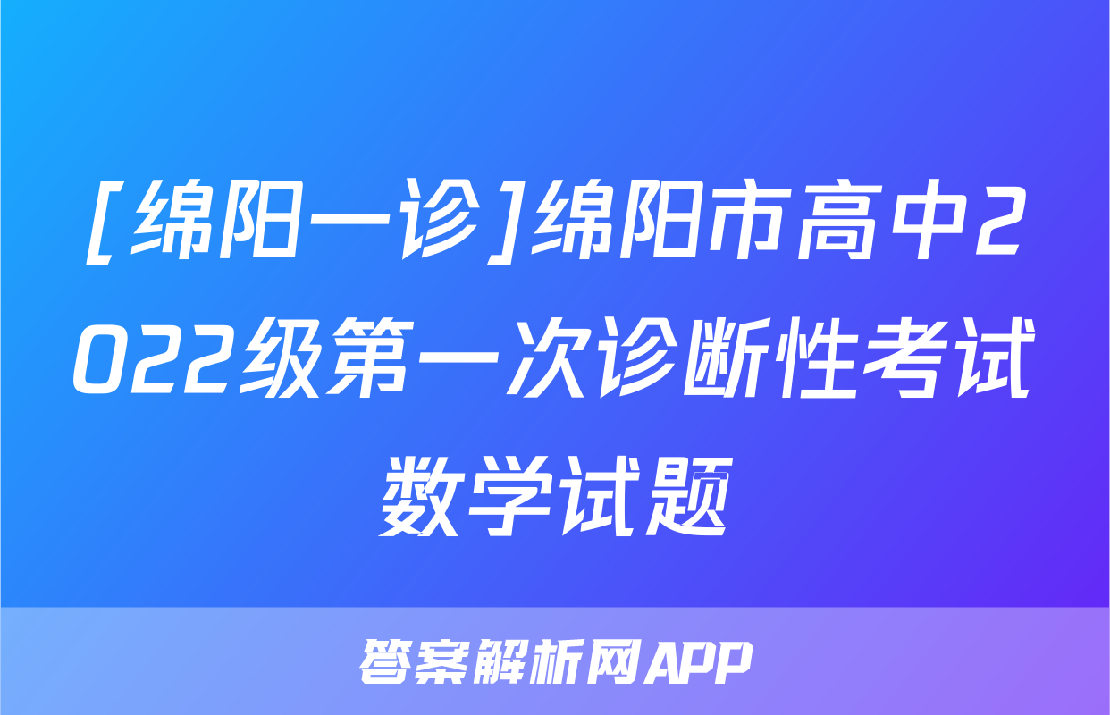 [绵阳一诊]绵阳市高中2022级第一次诊断性考试数学试题