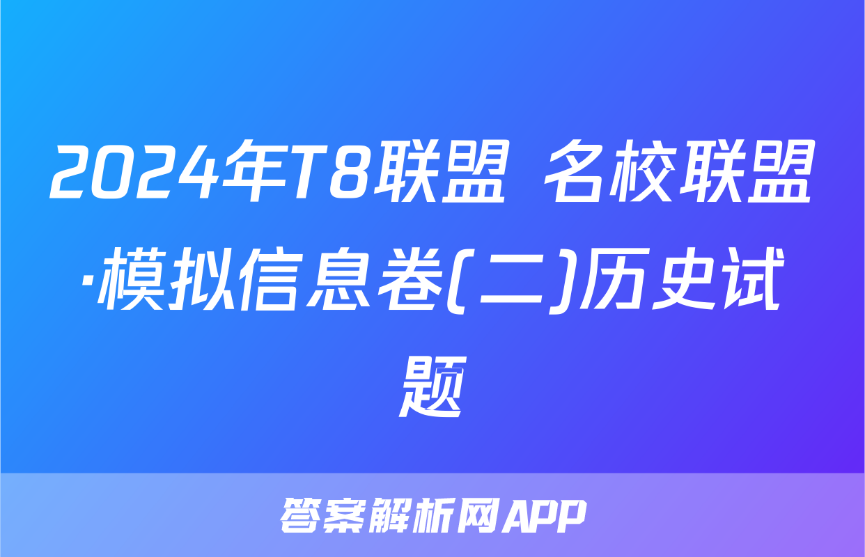 <p>1、2024届高三第二次T8联考历史答案</p><br><p><p>1、安徽省2024届“皖南八校”高三第二次联考(HD)历史答案</p><br><p><p>1、安徽省2024届“皖南八校”高三第二次...