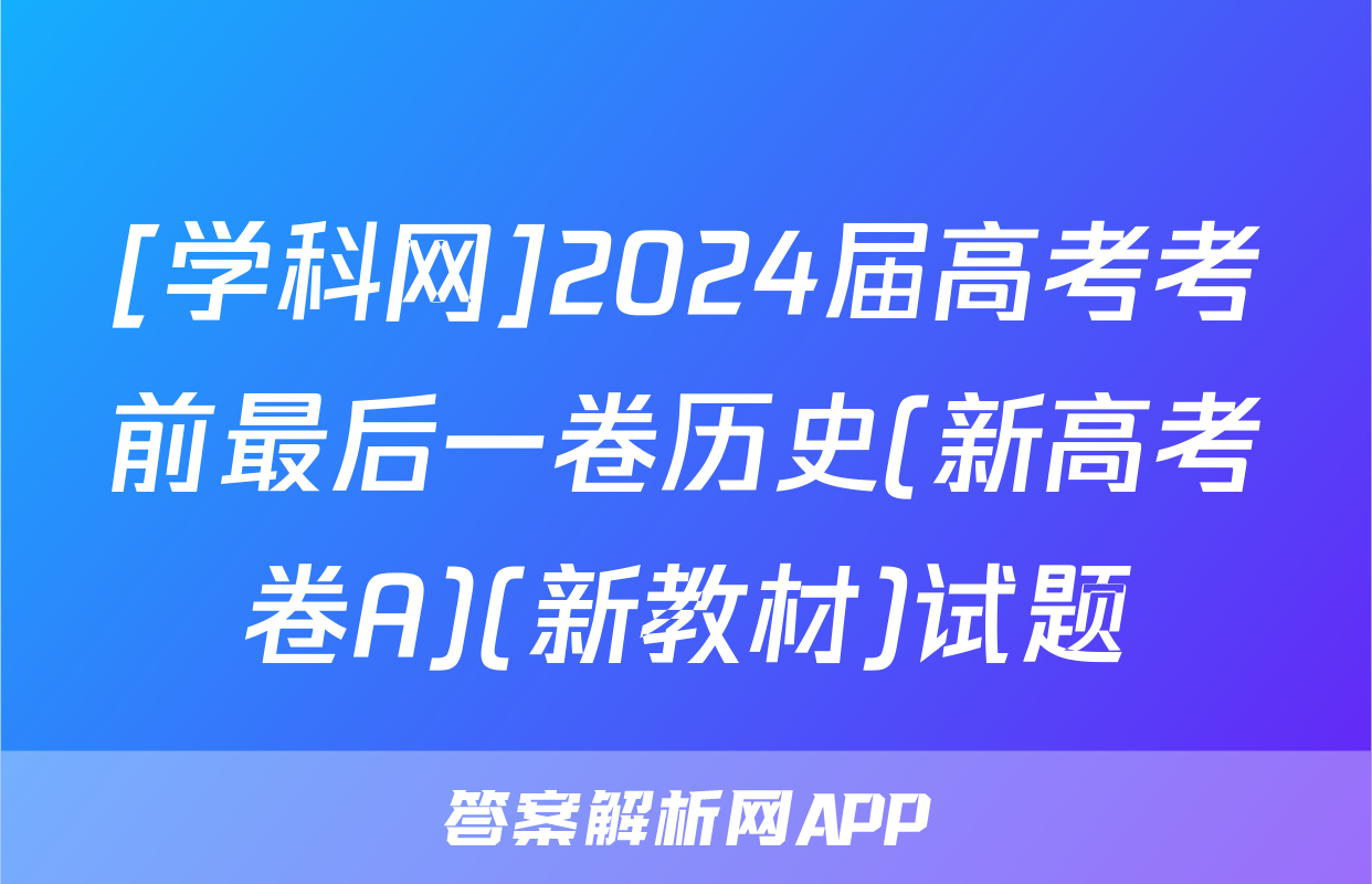 <p>1、名校之约 2024届高三新高考考前模拟卷(三)历史</p><br><p><p>1、2024届高三全国100所名校AB测试示范卷·历史[24·G3AB(新高考)·历史-R-必考-QG]四试题</p><b...