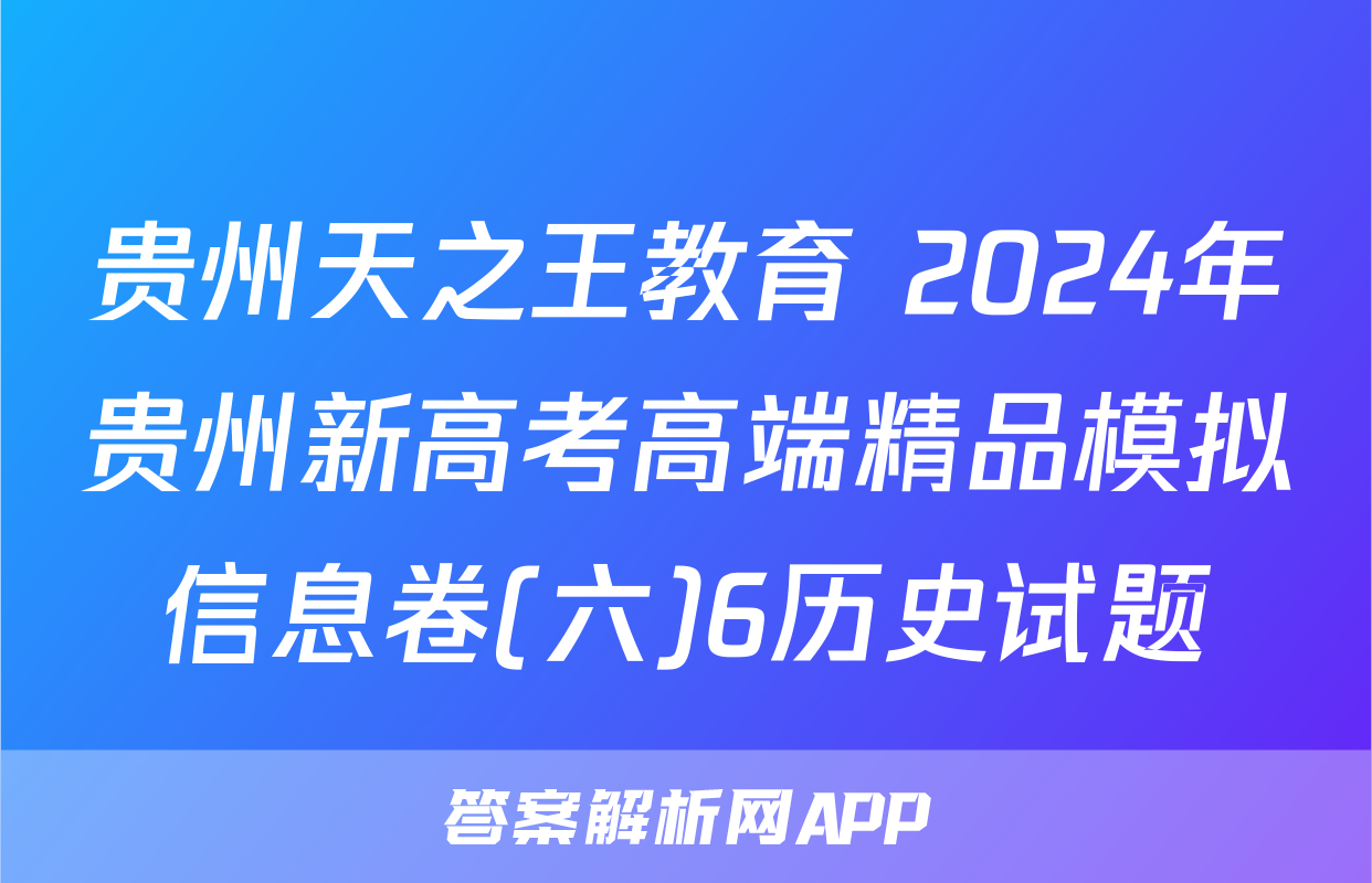 <p>1、贵州天之王教育 2024年贵州新高考高端精品模拟信息卷(一)1历史试题</p><br><p><p>1、贵州天之王教育 2024年贵州新高考高端精品模拟信息卷(一)1地理试题</p...