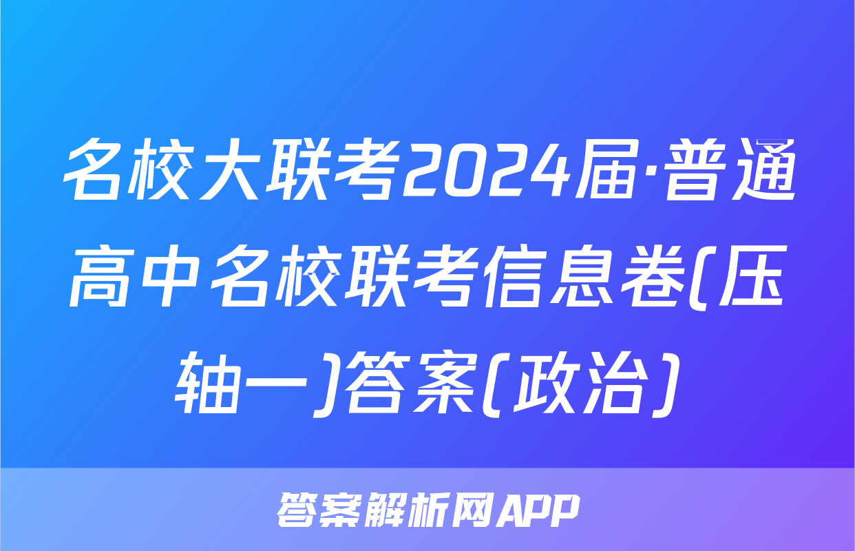 ![[名校大联考]2024届·普通高中名校联考信息卷(压轴一)答案(政治)](http://picture.guokaoyihao.com/weibo.png?text=[名校大联考]2024届·普通高中名校联考信息卷(压轴一)答案(政治))