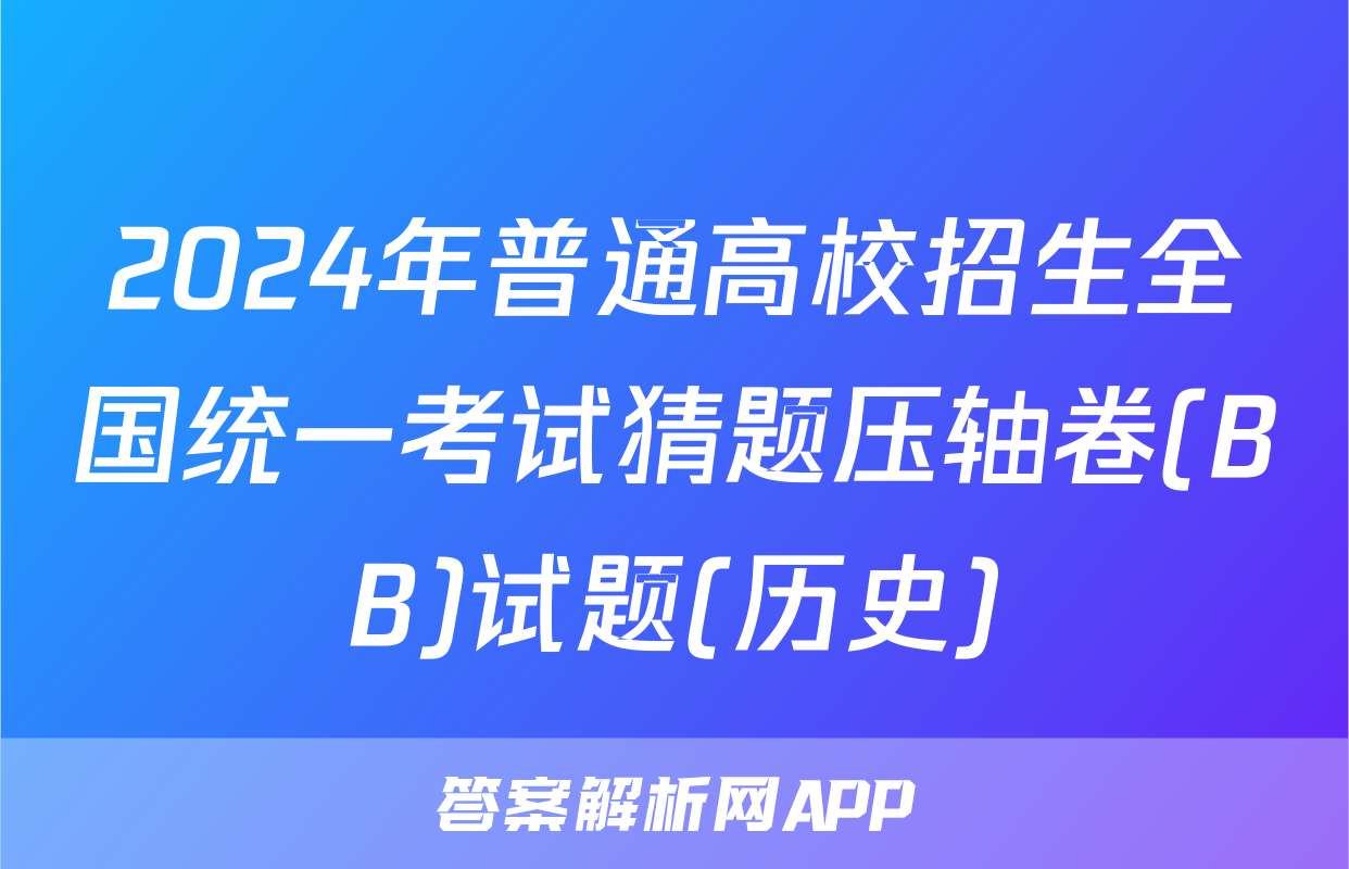 <p>1、2024年普通高校招生全国统一考试猜题压轴卷(BB)答案(历史)</p><br><p><p>1、2024年普通高校招生全国统一考试猜题压轴卷(BB)文科数学F答案</p><br><p>保密★...