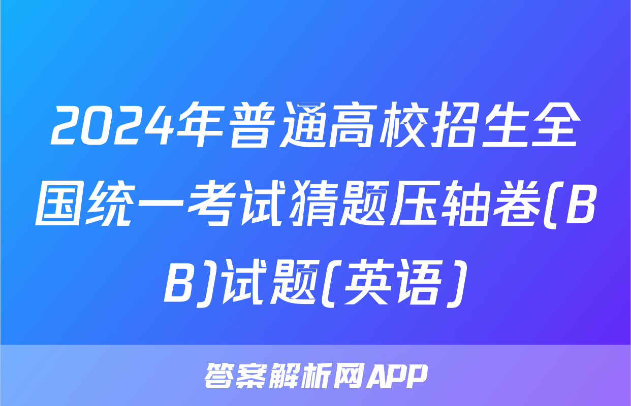 <p>1、2024年普通高校招生全国统一考试猜题压轴卷(BB)英语F试题</p><br><p><p>1、2024年普通高校招生全国统一考试猜题压轴卷(BB)文科数学F试题</p><br><p>22,(本...