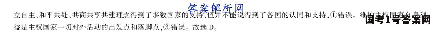 13.D【解析】本题考查是国际关系的相关知识。主席总书记开创性提出推动建设相互尊重、公平正义、合作共赢的新型国际关系,为推动国际关系健康发展提供了中国方案,共同推动新型国际关系的建设,契合时代发展潮流和国际形势深刻变化的客观要求,②符合题意。“中国方案”也致力于走出一条对话不对抗、结伴不结盟的国与国交往新路,共建人类命运共同体,④符合题意。独立自主、和平共处、共商共享共建理念得到了多数国家的支持,但并不能说得到了各国的认同和支持,①错误。维护主权国家自身利益是主权国家一切对外活动的出发点和落脚点,③错误。故选D。