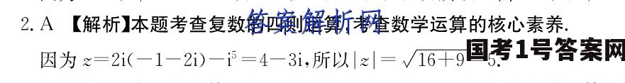 2.A【解析】本题考查复数的四则运算,考查数学运算的核心素养因为x=2i(一1-2i)-i5=4一3i,所以|x=√/16+9=5.